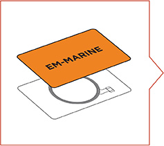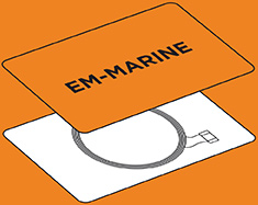 Чип работает в частотном диапазоне 125 КГц в режиме Только для чтения. Имеет серийный номер длиной 40 бит (10 символов). Карты с чипом Em Marine в основном используются для контроля доступа и учета рабочего времени, в качестве электронныйх ключей, а также в дисконтных системах.
